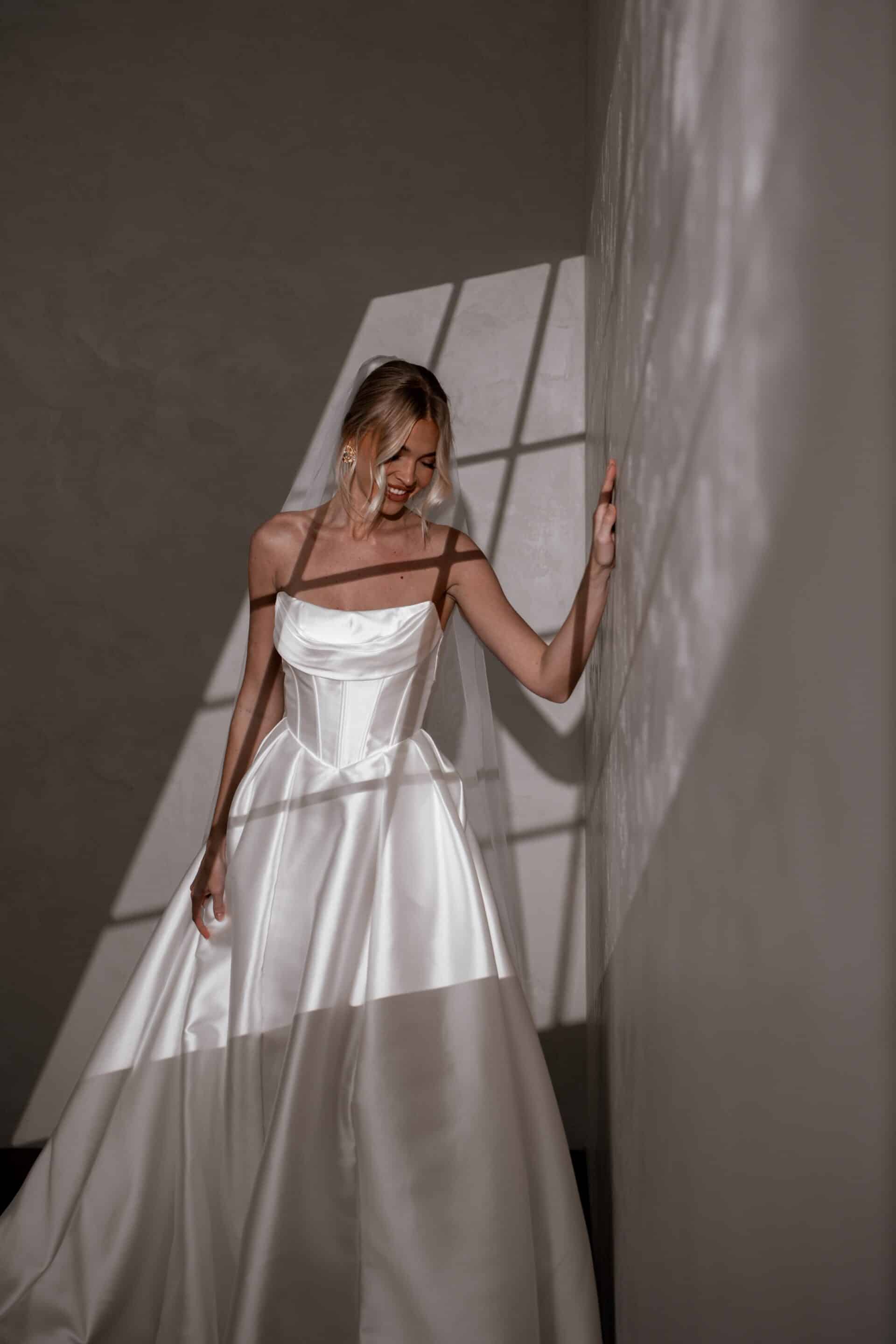 Basque waist bridal gowns are making a resurgence in 2025, capturing the hearts of brides who are drawn to their romantic, fairy-tale silhouette. Characterised by a fitted bodice that dips into a flattering V or U-shape just below the natural waistline, the Basque waist elongates the torso and accentuates the bride’s figure, creating an elegant, hourglass effect. Whether paired with voluminous skirts, flowing tulle, or sleek satin, the Basque waist adds a distinctive, regal touch that feels both classic and fresh. Ideal for grand ballrooms, garden settings, or rustic venues, this gown style is versatile enough to suit various wedding themes while offering a unique, timeless elegance that sets it apart from more conventional bridal silhouettes.