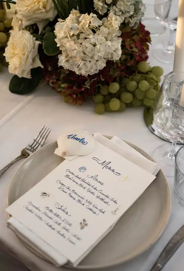 Hand-lettered wedding stationery brings a touch of artisanal charm and personal elegance. We’ll see couples moving away from modern sans serif typefaces and embracing the one-of-a-kind feel that hand-lettering (whether custom or digital) provides. From invitations and welcome signs to menus and place cards, this trend showcases the beauty of hand-drawn elements, making each piece a true work of art. Whether it’s a whimsical script, print style, or calligraphy, hand-lettered stationery elevates the overall aesthetic, setting the tone for a beautifully styled wedding.