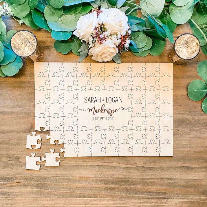 For the playful couple, Jenga blocks or puzzle pieces make an entertaining alternative to the traditional wedding guest book. Set up a station with blank blocks or puzzle pieces, and a few pens (we recommend Sharpie Fineliners for long-lasting and best results). Guests can write their names and a brief message (note: space is limited), and then either stack up the tower or add to the puzzle. We love this idea as a practical solution to revisiting messages time and time again. Picture pulling out Jenga to play with your kids, or framing the puzzle to hang in your home. It’ll no doubt bring back the memories and can be shared with generations to come.