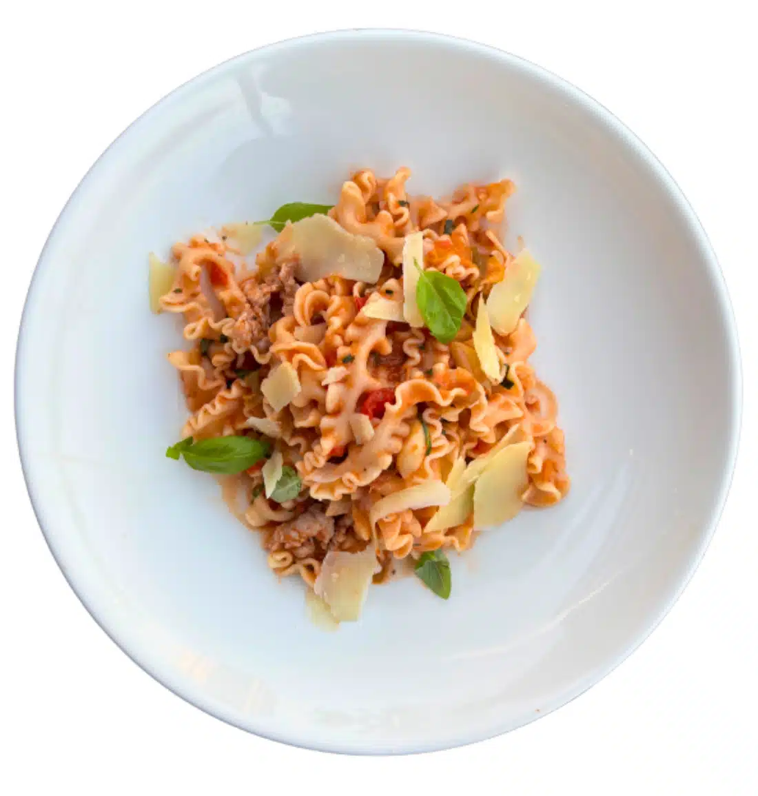 Curly ribbons of sourdough mafaldine pasta catch every bite of this rustic pork and fennel sausage sauce – handcrafted in Brisbane by Vede Pasta.