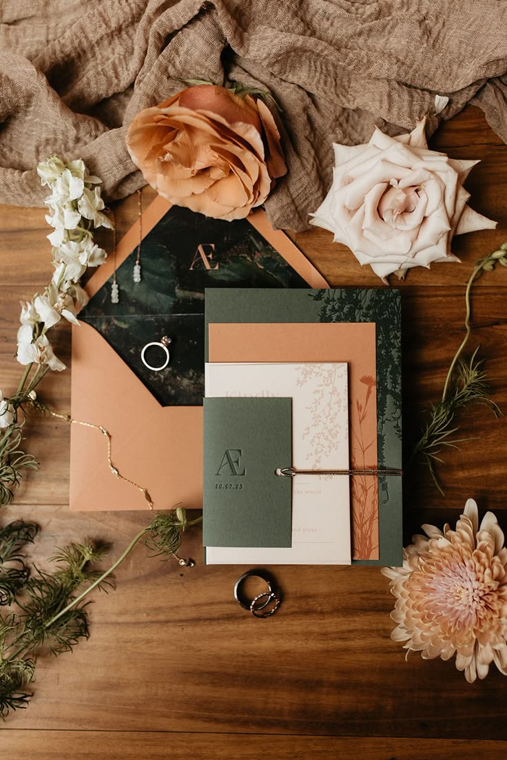 - Invitations: Terracotta cardstock with sage envelopes and botanical illustrations.