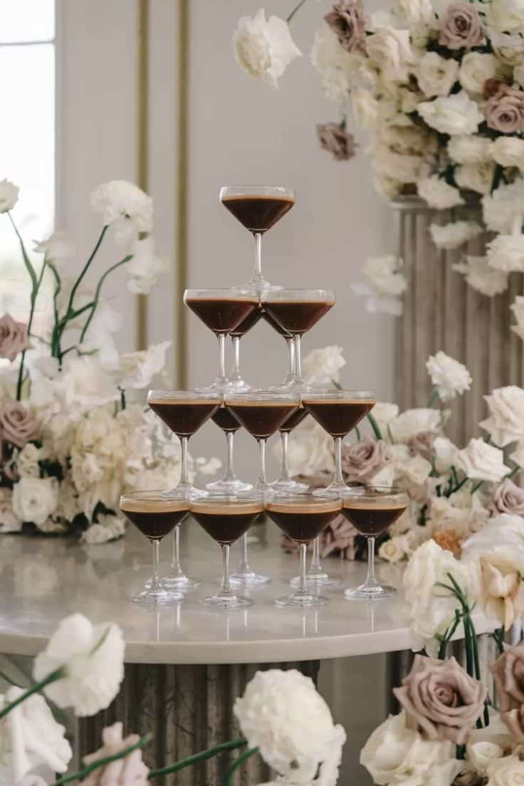 - Elegant espresso martini tower served at a Factory 51 engagement party in Brisbane.