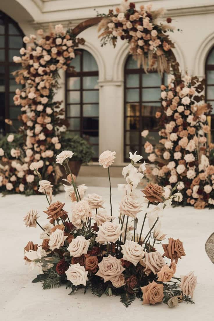 - Florals: Pair with creamy whites, blush, and dried botanicals.